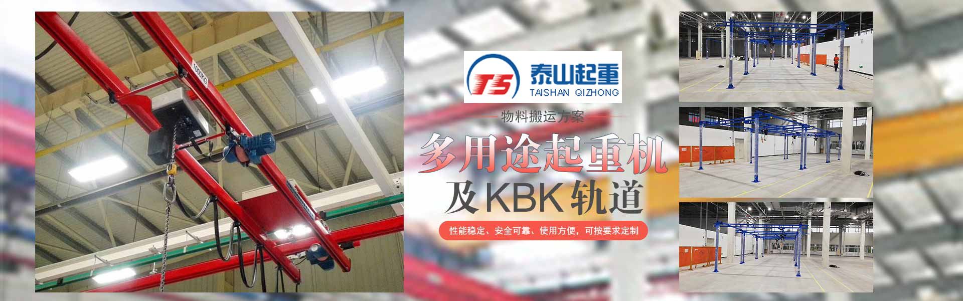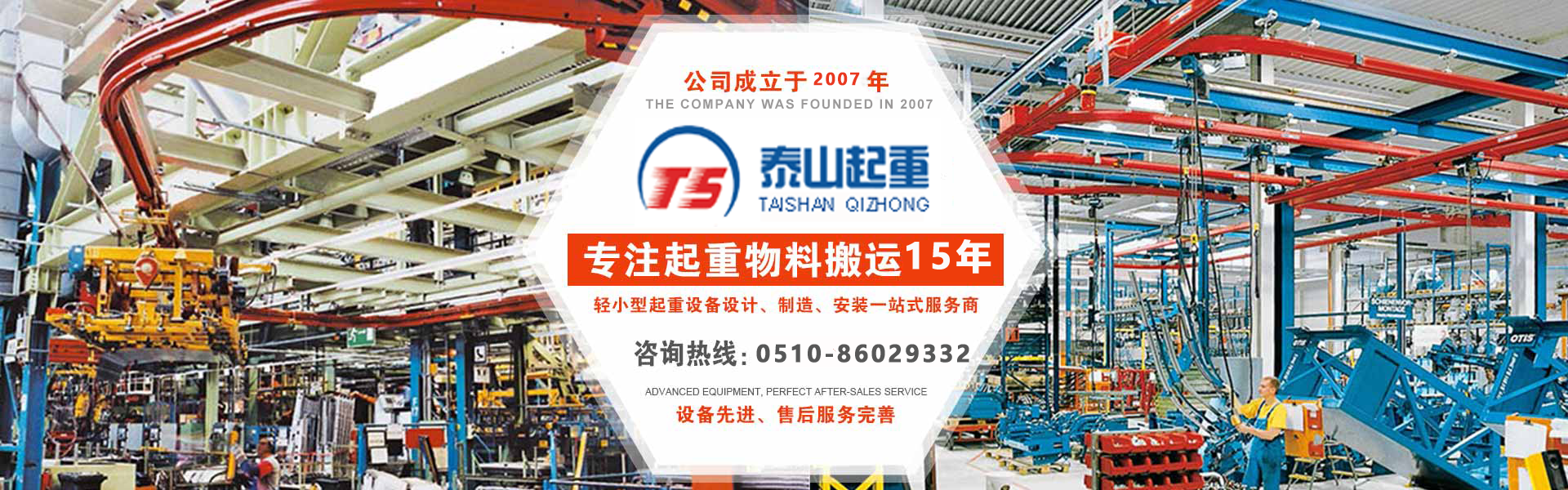 江陰市泰山起重設(shè)備有限公司座落在富庶的現(xiàn)代化港口城市——江陰市南閘鎮(zhèn)工業(yè)園區(qū),緊靠錫澄高速,錫澄路,北依江陰港區(qū),貫通滬寧高速的世界第四、中國第一的江陰長江大橋,穿越而過,飛架南北,高速至上海虹橋機場僅2小時,南又緊靠正在建設(shè)中的無錫國際機場,交通便捷,環(huán)境優(yōu)美?! ”竟緦I(yè)為壁行式懸臂起重機、KBK軌道,鋼絲繩電動葫蘆、環(huán)鏈葫蘆、KBK組件,梁式起重機、電動旋臂起重機等配套起重機械配件,主要產(chǎn)品有:KBK軌道,梁吊掛裝置、環(huán)鏈葫蘆,KBK組件,手動式小車、行車走輪、電纜滑車等起重機配件,同時可提供起重設(shè)備的安裝、維修、為客戶提供全方位的技術(shù)咨詢等各項服務(wù)。  公司的管理將“以人為本”作為宗···...